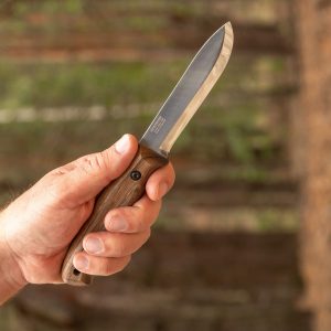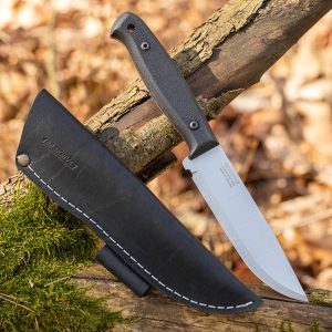 Production is focused on the production of solid quality tools in an affordable price range. There are mainly two types of steel: High Carbon Steel 1066 and Stainless Steel 5Cr14MoV. The first of them gives the user great sharpness and high cutting aggression and ease of re-sharpening. It is a steel that requires more attention in terms of care. It will rust if not cared for. The second one is stainless steel, not as sharp as the previous one, but relatively well sharpened and easy to care for. BPS Knives also uses other steels in the production process. The handles are mainly made of walnut wood, sometimes bog oak and other materials. The knives are delivered with sheaths made of vegetable tanned natural leather and, depending on the model, with flint.