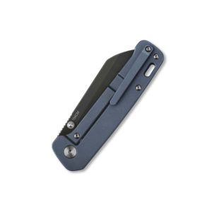 The presented QSP Knife Penguin QS130-S 154CM Blue Titanium folding knife has an efficient black sheepsfoot blade made of 154CM steel with a stonewash finish and a titanium handle. The blade against opening is secured by a frame lock, and the knife is opened by a pin protruding from the head on both sides.