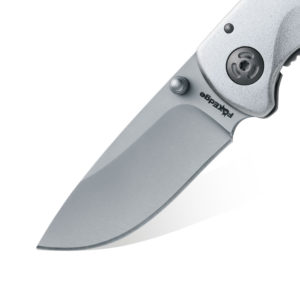 FOX Edge Pop Smoke FE-022 Aluminium Folding Knife by Russ Kommer has an 8Cr13MoV stainless steel blade (sand blasted) and a steel and aluminium. Knife is opened by thumb-stud (double-sided). The open blade is secured against closing by a frame lock. The knife is equipped with a steel carrying clip.