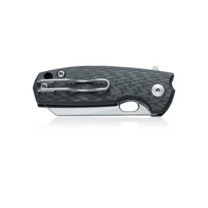 Black FOX Bean Gen2 BF-719 by Serge Panchenko has a 440C stainless steel sheepsfoot blade and a stainless steel handle (both stone washed). We open the knife blade with one hand using the hole in the blade or with both hands. The knife is equipped with a steel carrying clip.