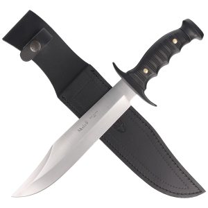 Nóż Muela Black ABS Black, Satin 420H (7221) to masywna konstrukcja ze stałą klingą od hiszpańskiej firmy Muela. Solidna klinga tego noża zniesie bez uszczerbku każdą pracę, niezależnie od warunków. To niezastąpione narzędzie podczas wypraw poza miasto, biwaków, a także sprawdzające się jako nóż survivalowy, myśliwski czy do prac domowych.
