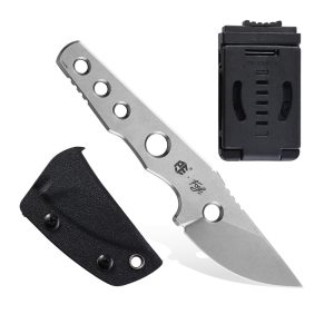 QSP Knife Canary QS141-B1 14C28N Black/Red G10 is a knife for everyday use or as a spare blade in the field. Canary is a neck knife. It has a full tang design and very compact size. Kydex sheath with a chain and through pins allows you to wear it not only around the neck. QSP Knife Canary QS141-B1 14C28N Black/Red G10 has a spear point blade with a flat grind and it's stonewashed. The blade is made of 14C28N steel and has a handle of black and red G10. The handle has been drilled for better knife balance and better traction during grip.