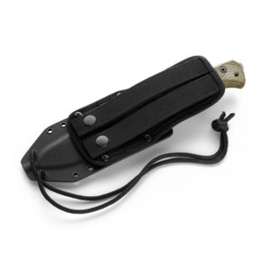 The knife has a unique construction. The construction of the handle combines the advantages of full tang and hidden tang construction. The wide tang of the knife runs along the entire length of the handle (as in the full tang), but it has been completely encapsulated with G10 composite covers twisted on it (similar to the hidden tang). This construction gives us as much durability as in the classic full tang, however, it is more pleasant for the hand working in the cold without a glove, as in the case of hidden tang knives.