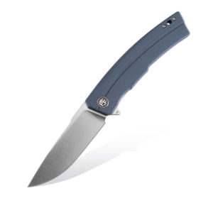 QSP Knife Mamba V2 QS111-H1 Folding Knife Satin D2 Blue Micarta has a blue micarta handle. The satin blade of the knife is opened thanks to the flipper protruding from the blade, and it is secured by a liner lock against folding during work.