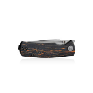 QSP Knife Otter QS140-B2 Folding Knife Black Stonewashed S35VN Copper Foil Carbon Fiber it has a carbon fiber handle with copper threads. The black blade made of American S35VN steel is opened thanks to the flipper sticking out of the blade, and it is secured by a liner lock against folding during operation.