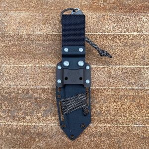 MK Knives & Tools Scout "Wood Spirit II" has a blade made of the highest quality Vanax steel with an innovative hollow grind (grooves on the blades) and a glassblasted finish. The knife has a coyote G10 composite handle with stabilized wood inserts. The set includes a black holstex holster decorated with pictograms (owl, mushrooms, leaf), enriched with color-matched accessories. The holster is also distinguished by a black natural leather grommet. The holster can be mounted to MOLLE solutions, thanks to the additional, specially designed kydex buckle included in the set.