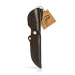 In the set with the knife we get a sheath made of leather. This is a classic solution that matches the style of the tool in it. Wood and leather have always been the perfect combination. Like the knife itself, the sheath is handmade, has a high profile and hides part of the handle and a latch to better protect the knife from falling out. It is traditionally attached to the waist in a vertical position.