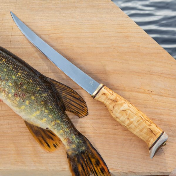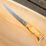 Arctic Legend Fillet Knife Stainless Steel Curly Birch is a traditional Finnish knife with a long blade made by hand from natural materials made for filleting.