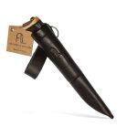 The blade is made of carbon steel and finished with satin/oxide, has a straight back and a flat grind, very well suited for heavier camping, hunting and outdoor work. Like the whole knife, it is made, finished and sharpened by hand, which gives each knife an individual character.