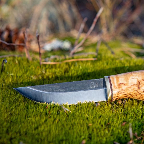 Arctic Legend Handicraft Knife Carbon Steel Curly Birch is a traditional Finnish Puukko knife created for outdoor, handmade from natural materials.