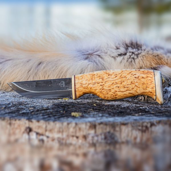 Arctic Legend Hunter’s Knife Carbon Steel Curly Birch is a traditional Finnish Puukko knife created for hunting and outdoor, handmade from natural materials.