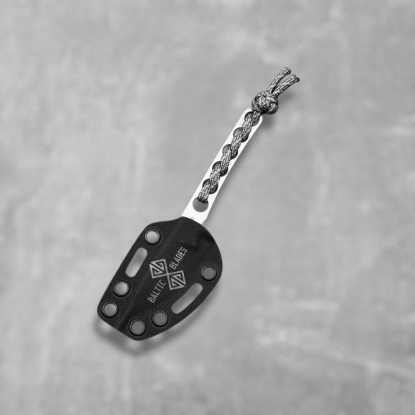 The knife features a skeletonized handle with holes for paracord. Originally, a section of paracord was braided on it in colors chosen by the maker. There’s nothing stopping you from customizing the color to suit your needs or replacing it if it gets dirty. Paracord enhances the grip of the handle, making it easier to remove the knife from the sheath. One interesting customization option is undoubtedly the ability to attach a bead to the end of the handle using paracord and one of the popular weaves such as snake or diamond. Originally, a bead was not included in the set, but if you’re interested in enriching your blade with one of them, we invite you HERE.