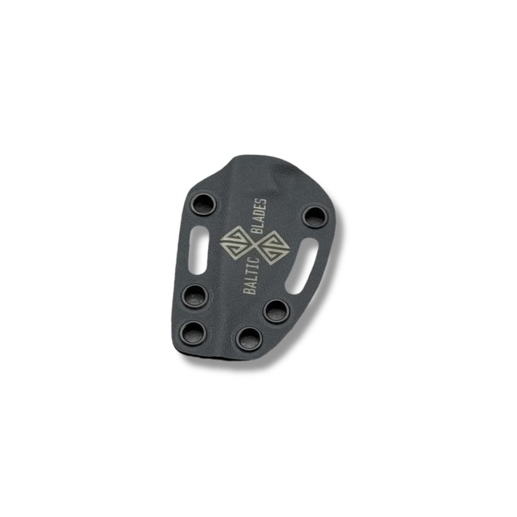 The knife comes with a sheath made of hand-formed Kydex, known for its high resistance to impacts, scratches, low moisture absorption, and resilience to various weather conditions and many chemicals. The sheath allows for discreet carrying in the pocket. It can also be personalized, for example, by attaching a clip to hook onto the edge of pants pockets or a belt. The clip can also be used to attach the sheath with the knife to a designated spot in a pouch, organizer, or backpack to prevent it from shifting and make it easy to locate when needed. The clip is not included in the set, but for sheath personalization, we recommend one of the two UltiClip clips: 3.3 or 2.2 available HERE if needed.
