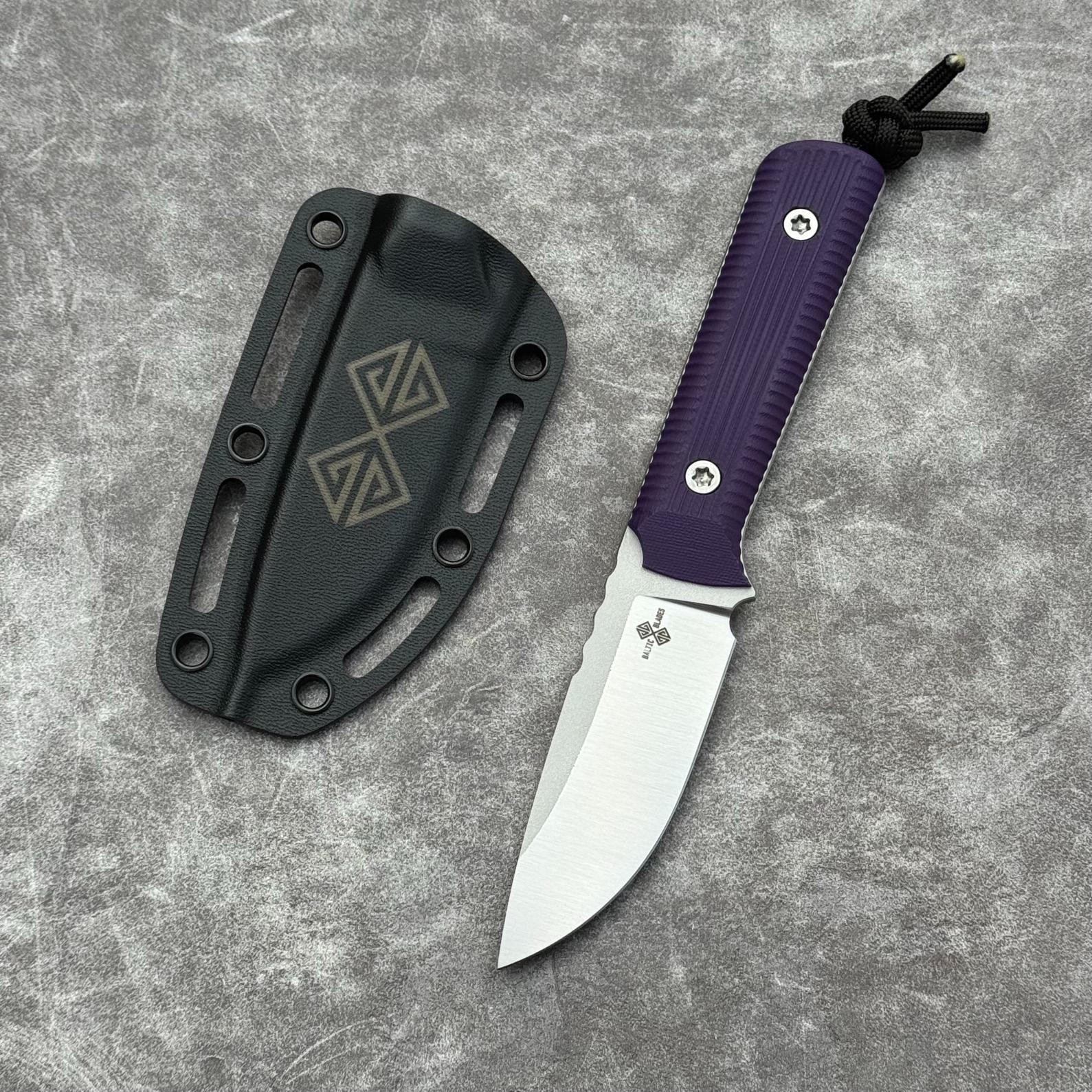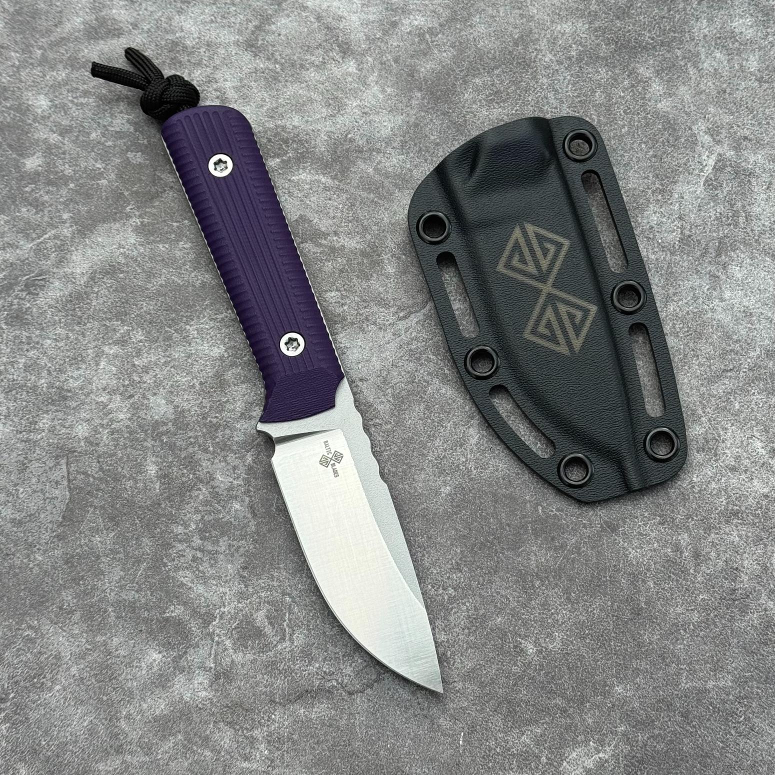 Baltic Blades Iltis “Pluma” Satin Elmax Purple G10 Black Kydex