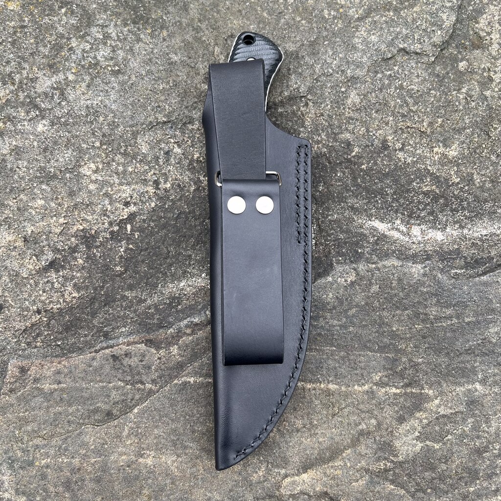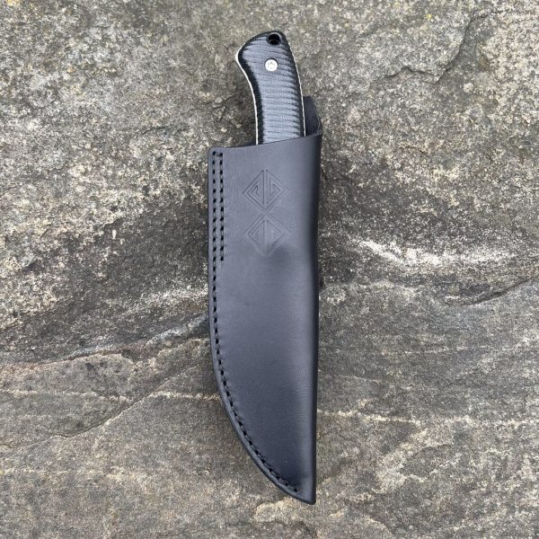 The knife comes with a handmade high-quality Italian vegetable-tanned leather sheath for carrying and storing. The sheath is made in a “dangler” style, with a loosely hanging belt loop. This solution does not restrict the user’s movements and eliminates the risk of the user’s body being pinched during work in kneeling positions, bending over, etc.