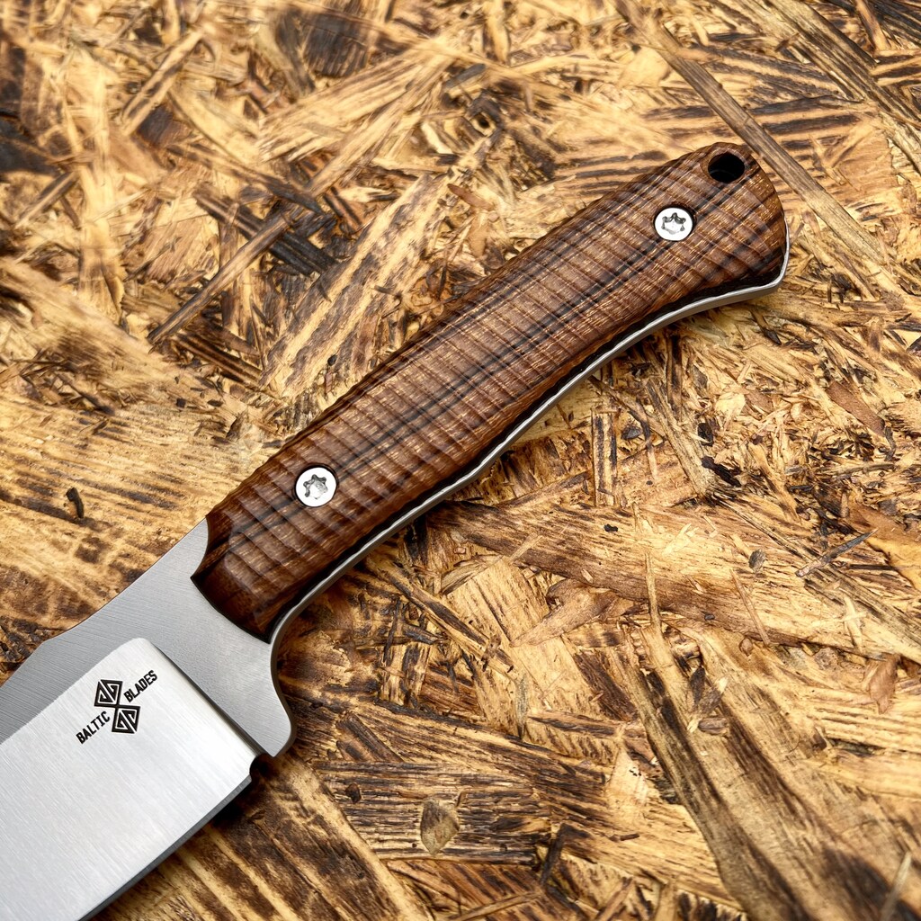 Baltic Blades! That’s the brand under which the works of talented knifemaker from Lithuania, Paulius Jančiukas, are hidden. The energetic and brilliant creator has been honing his craft for several years, surprising with ever newer creations. From kitchen knives to hunting, bushcraft, outdoor, and everyday knives, to ingenious accessories useful for their users. Experimenting with designs, types of steel finishes, handle materials – that’s the realm where the knifemaker feels like a fish in water. The effects of these experiments surprise, delight, and work because as Paulius says: “Ultimately, knives are made for work, not posing.” Hence, despite the great appearance, various steels used (Becut, M390, Elmax, etc.), different handle materials (stabilized wood, micarta, G10, carbon fiber, and FatCarbon, etc.), and sheath tailored to the final knife style (leather or Kydex), ultimately, its usability is what counts.