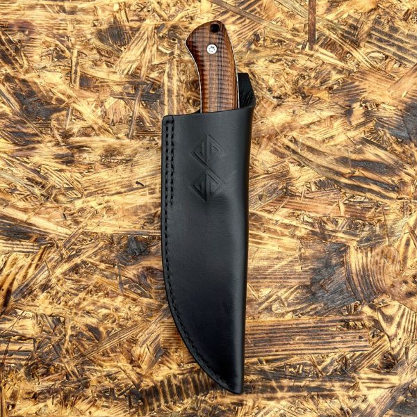 The knife comes with a handmade high-quality Italian vegetable-tanned leather sheath for carrying and storing. The sheath is made in a “dangler” style, with a loosely hanging belt loop. This solution does not restrict the user’s movements and eliminates the risk of the user’s body being pinched during work in kneeling positions, bending over, etc.