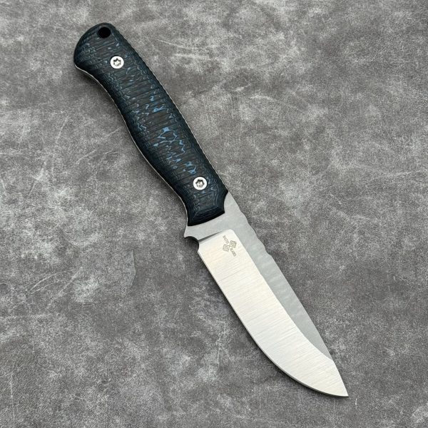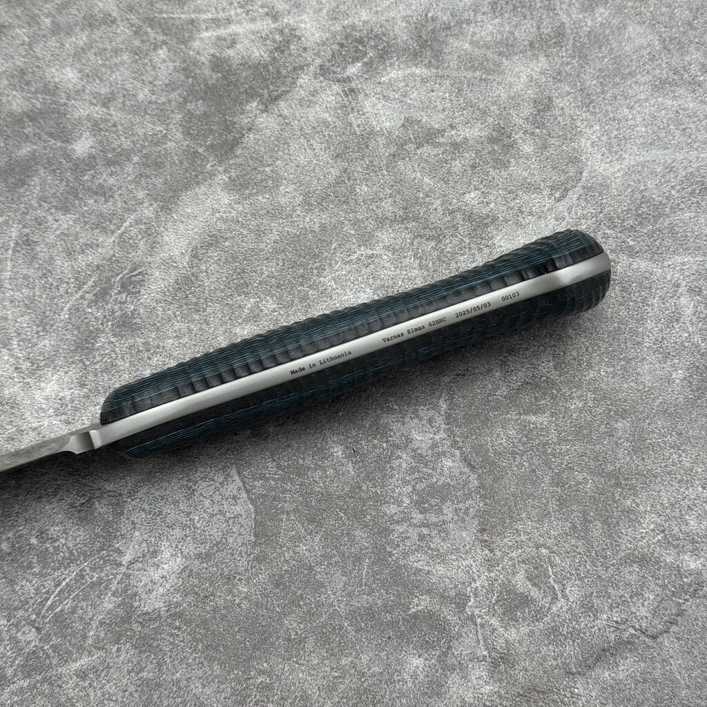 - Steel: Elmax (~62 HRC), satin finish