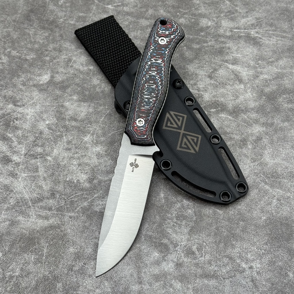 - The presented version, produced since July 2021, is a variant with steel tubes attaching micarta linings to the knife handle.