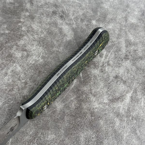 The blade is crafted from premium Elmax steel, a material renowned worldwide for its exceptional quality, originating from UDDEHOLM group’s European steel mills. Elmax blades offer outstanding features: long-lasting sharpness, corrosion resistance, and exceptional durability, including high wear resistance and strong resistance to mechanical damage.