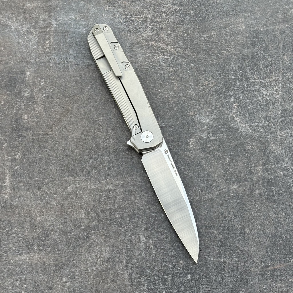 - Handle: Bead Blasted titanium, non-reversible titanium clip (Tip-Up)