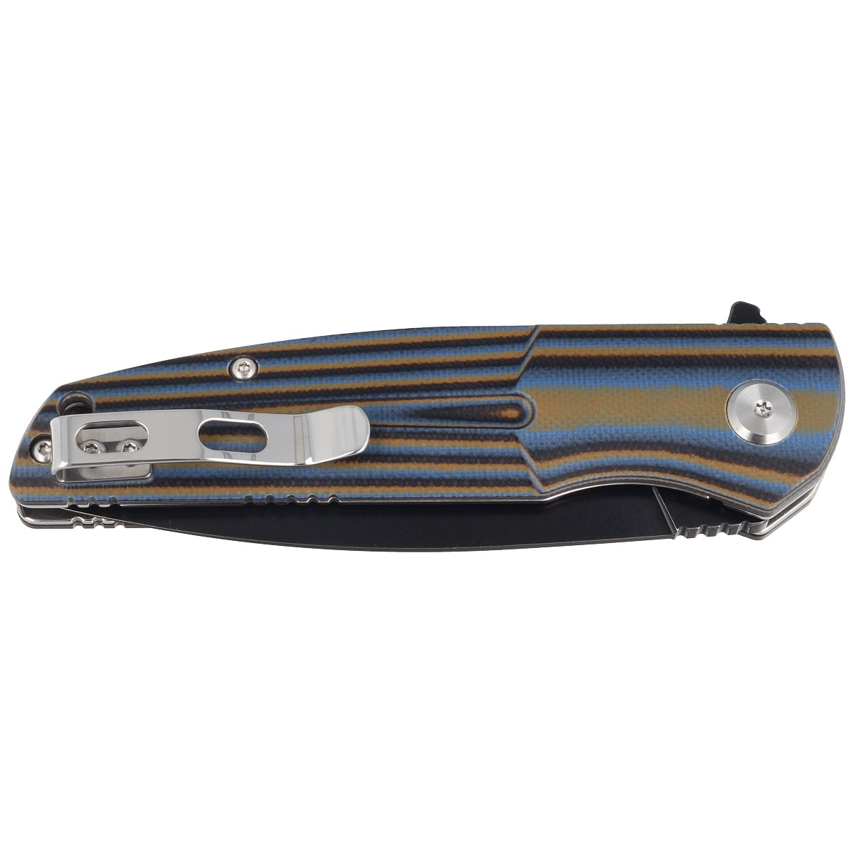 Nóż składany Bestech Fin Black / Blue / Brown G10, Black Stonewashed 14C28N (BG34D-3) to bestseller z wygodną i ergonomiczną rękojeścią wykonaną z praktycznie niezniszczalnego tworzywa G10, oraz ostrzem ze stali nierdzewnej 14C28N, spełni oczekiwania nawet najbardziej wymagających użytkowników.