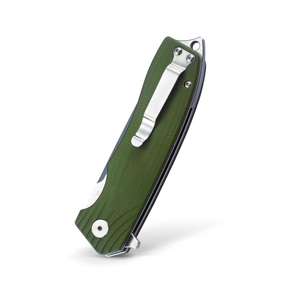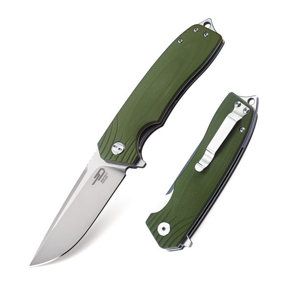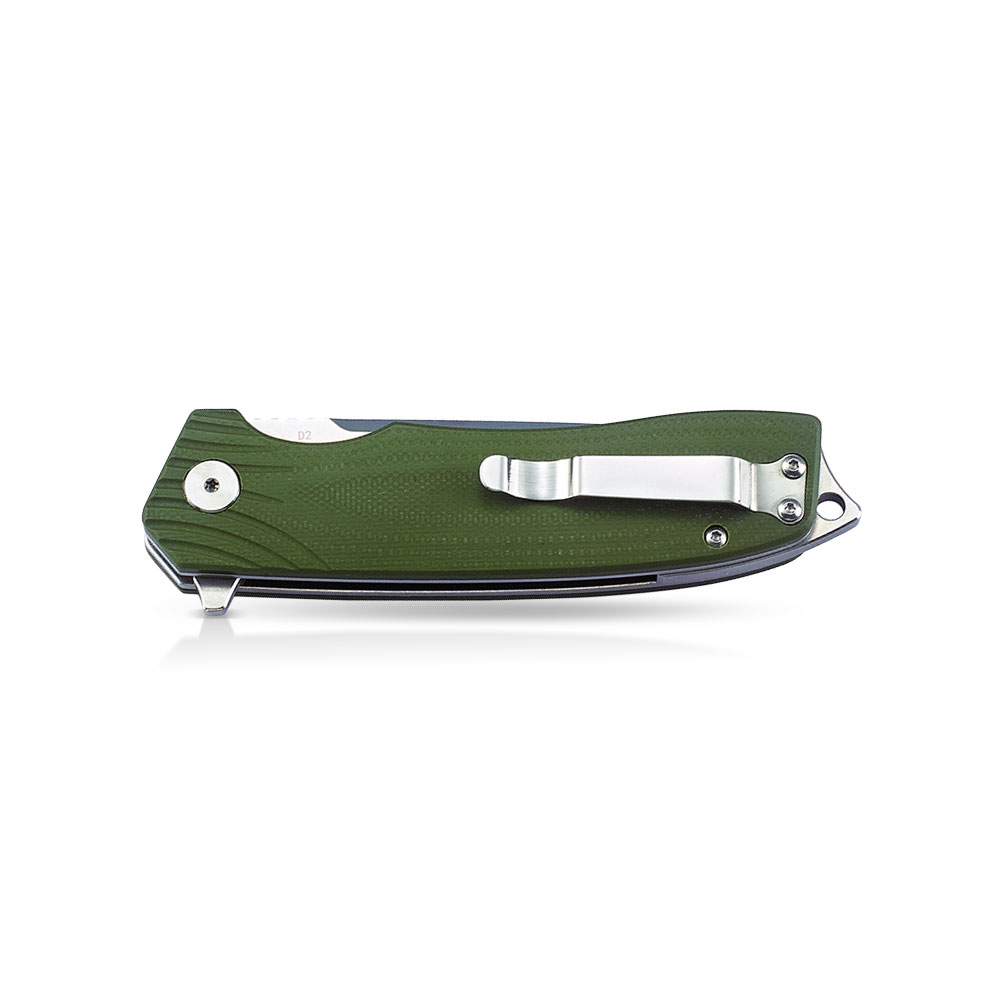 Nóż składany Bestech Lion Liner Lock Stonewash / Satin D2 Green G10 BG01B to solidny folder codziennego użytku (EveryDay Carry) otwierany płetwą (flipperem).
