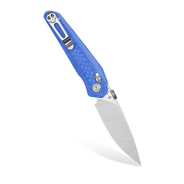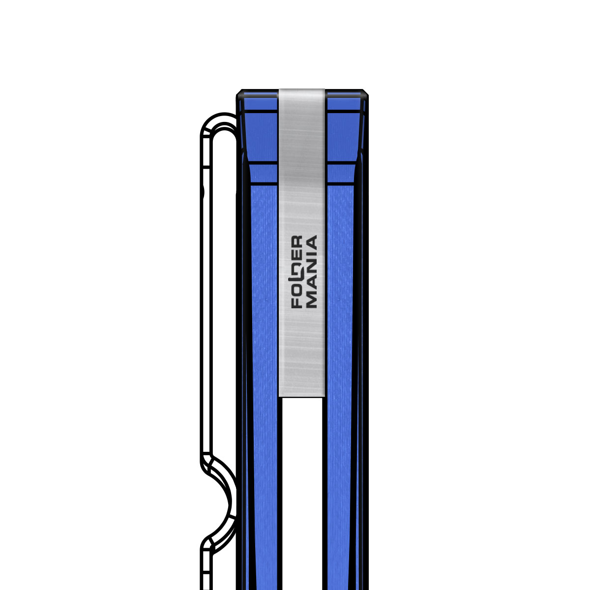 - Handle: Blue G10 scales with a surface texture imitating carbon fiber (Blue CarbonTex G10), steel liners and backspacer, stainless steel Tip-Up clip