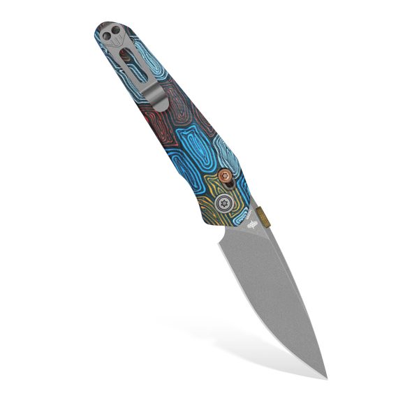 - Handle: Kaleidoscope Turlte G10, steel liners and backspacer, stainless steel Tip-Up clip