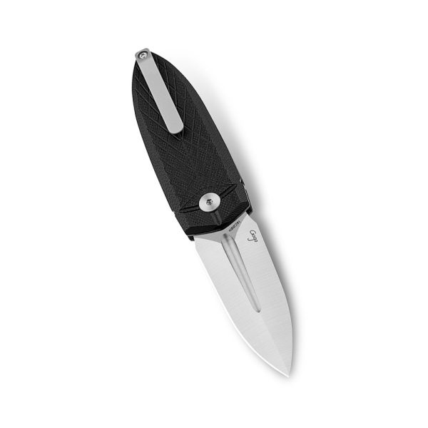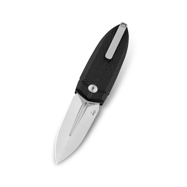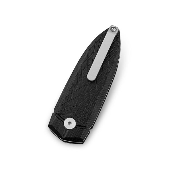 - Rękojeść: okładki z G10 (czarne – black), stalowy klips mocujący (jednostronny, Tip-Up)
