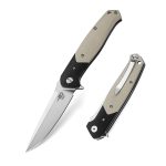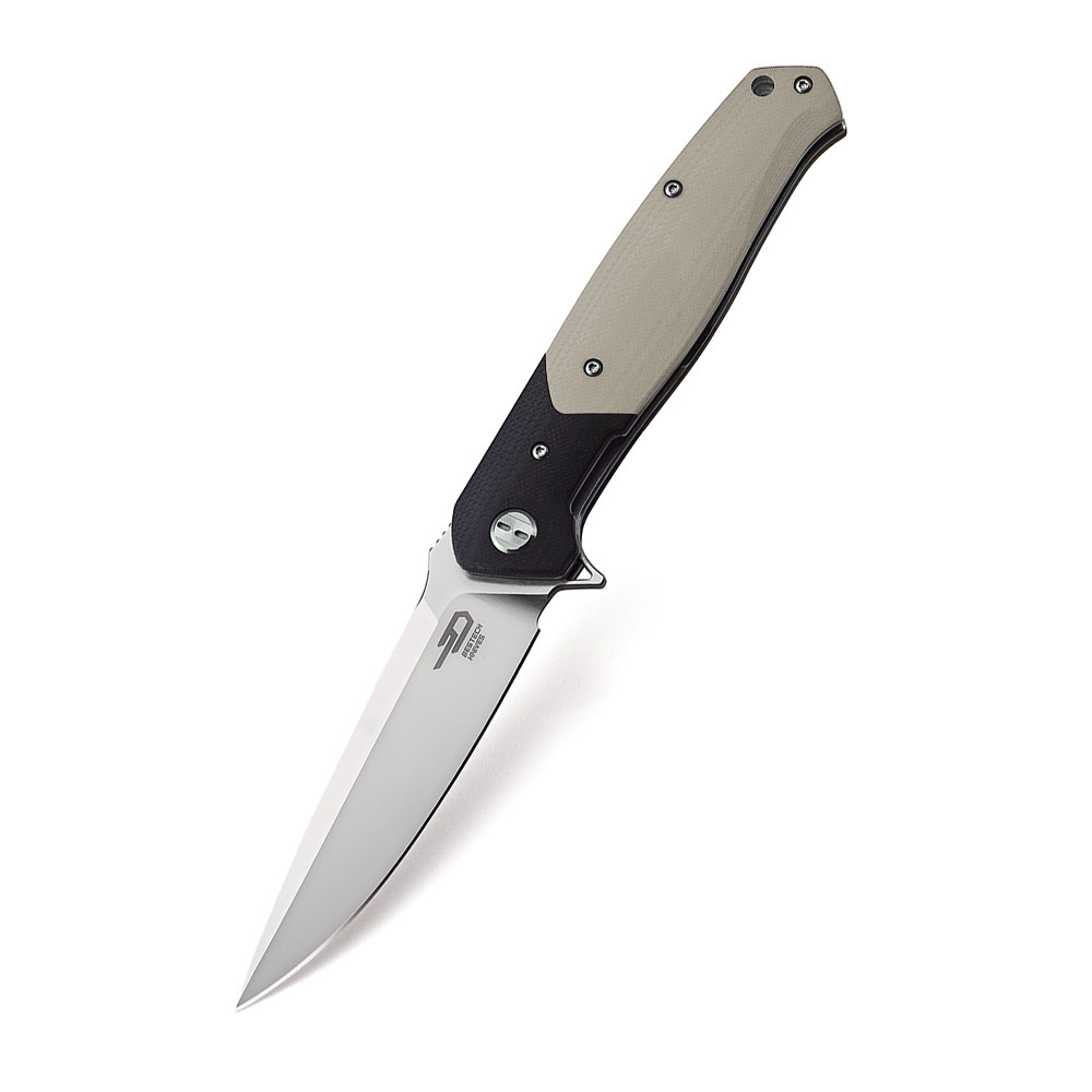 Bestech Swordfish Liner Lock Satin D2 Black & Beige G10 BG03B