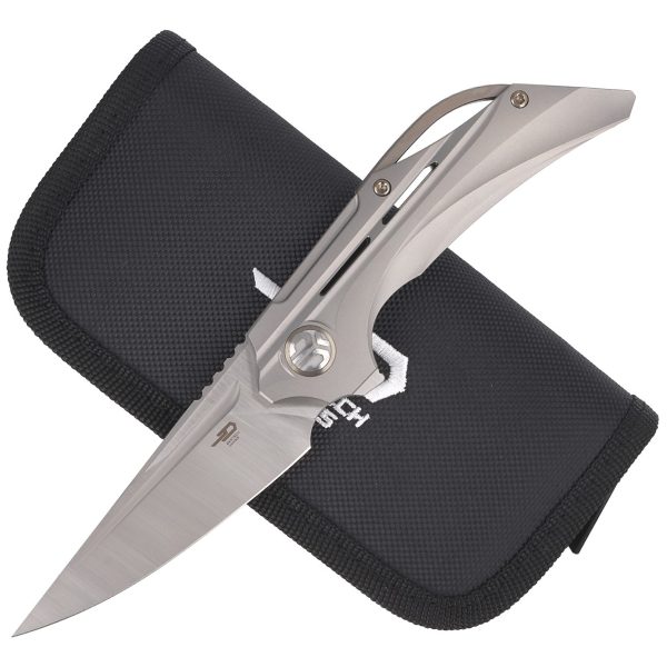 Bestech Vigil Grey Titanium, Satin M390 Folding Knife by Kombou (BT2201A)