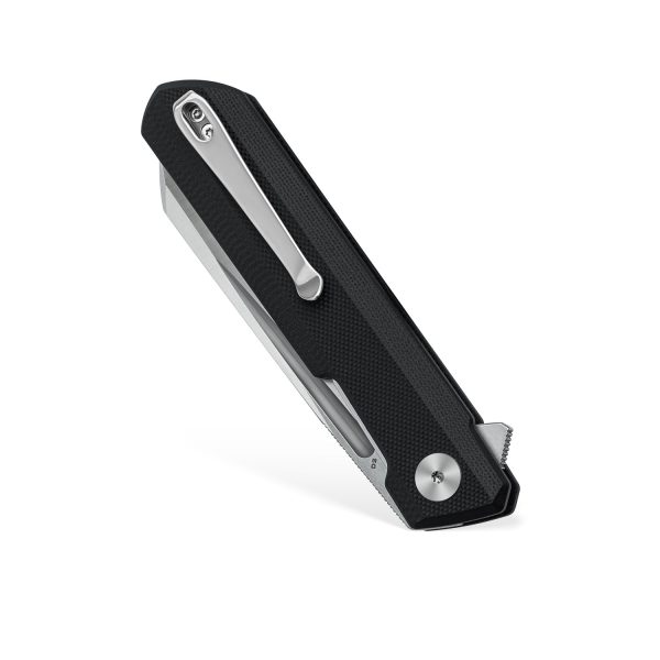 Głownia noża posiada profil sheepsfoot z długą i wygodną krawędzią tnącą. Stonowane w grubości ostrze (3,0 mm) połączone z wysokim szlifem płaskim, zapewnia doskonałą geometrię krawędzi tnącej świetną wydajność cięcia. Otwieranie ostrza wspomagają ceramiczne łożyska kulkowe oraz klasyczny flipper (płetwa), która po otwarciu pełni rolę jelca zapobiegającego osunięciu się dłoni na krawędź tnącą. Na grzbiecie klingi znajduje się karbowane oparcie pod kciuk (jimping) a w okolicy grzbietu przez długość ostrza biegnie dwustronne zbrocze (fuller). Dla bezpieczeństwa obsługi nóż wyposażono w solidną blokadę typu liner lock, zapobiegającą składaniu się ostrza podczas pracy.