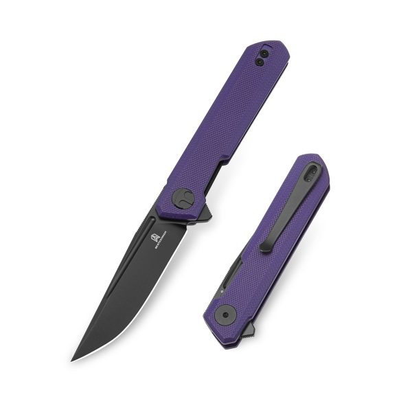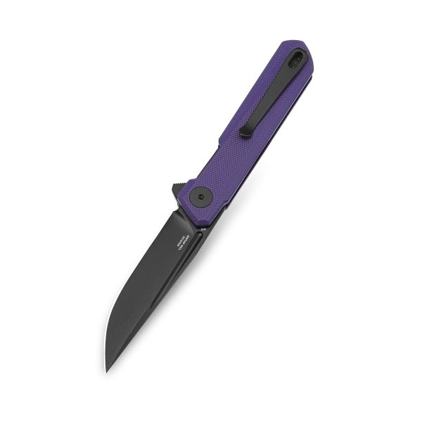 Bestechman Mini Dundee Folding Knife Liner Lock Black DLC D2 Purple G10 by Ostap Hel BMK03J