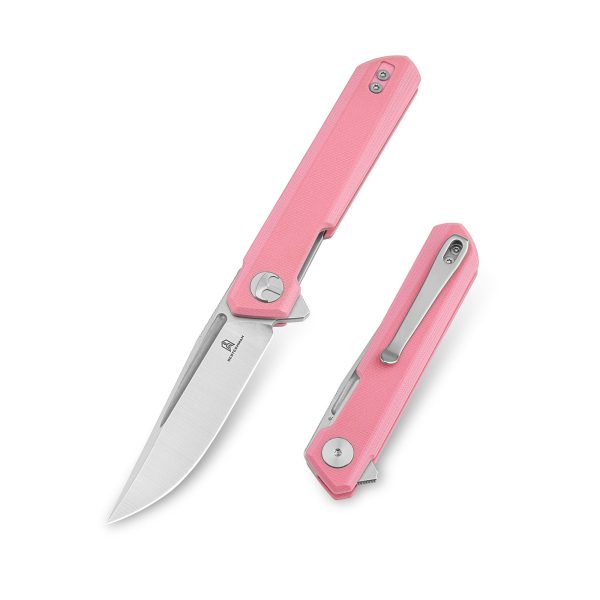 Bestechman Mini Dundee Liner Lock Folding Knife Stonewash / Satin D2 Pink G10 by Ostap Hel BMK03B