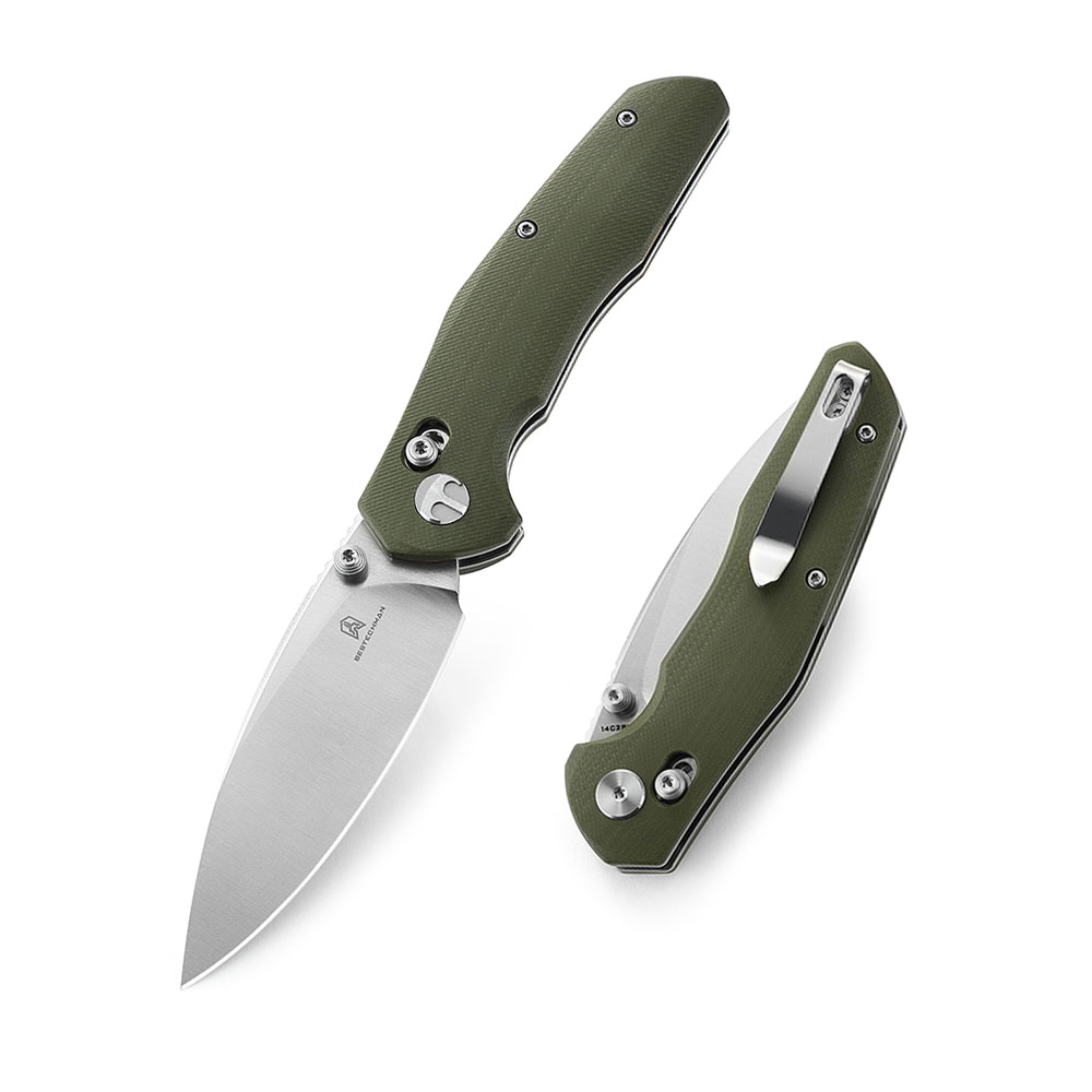 Bestechman Ronan Bar Lock Folding Knife Satin 14C28N OD Green G10 BMK02B