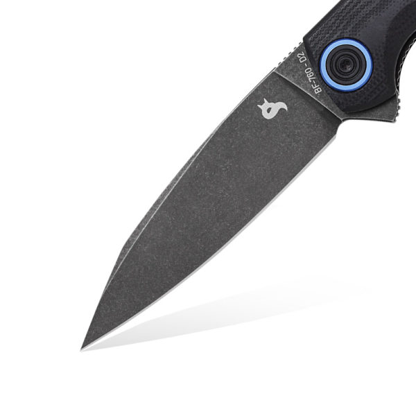 FOX Knives Argus BF-760 Folding Knife has a wharncliffe blade with a flat grind and a black stoneawsh finish for hiding possible scratches. It is opened with a flipper that allows you to quickly unfold the knife and the liner lock is responsible for blocking. The handle consists of steel liners, connected by a steel, anodized backspacer and G10 scales. The whole is complemented by a steel clip (Tip-Up).