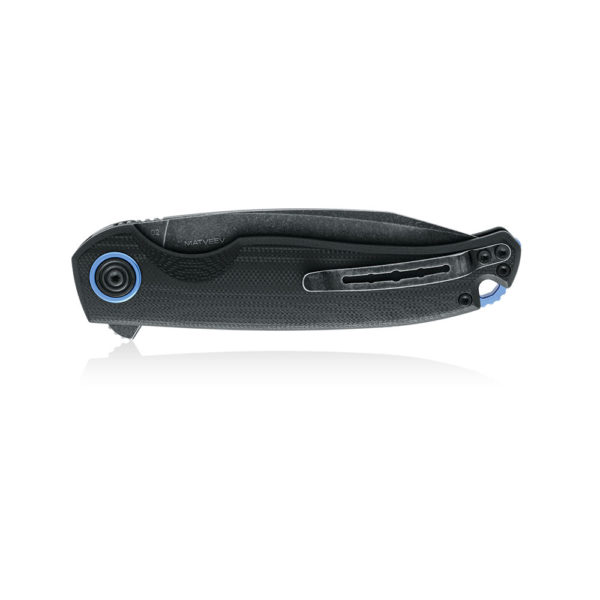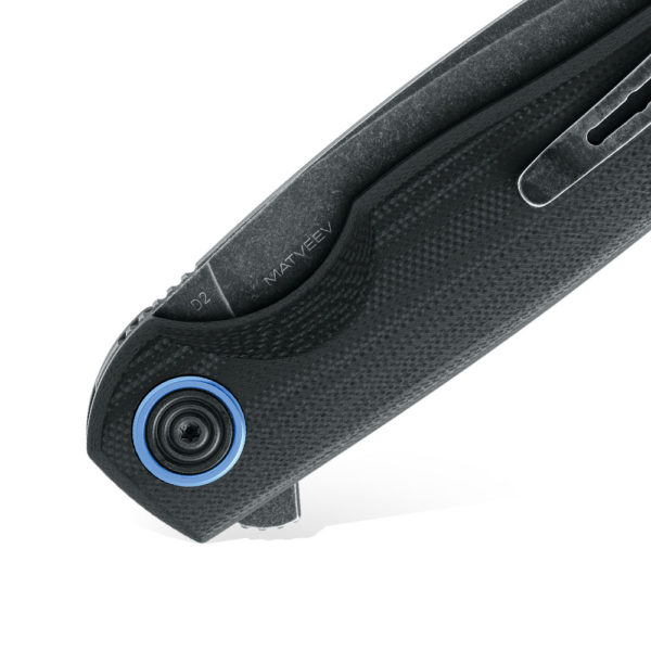 The knife has a clip mounted at the end of the handle, which allows you to carry the closed knife with the tip up. The clip is made of stainless steel.