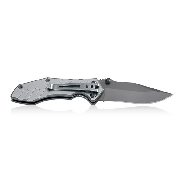 The knife has a strong clip (Tip-Down) mounted at the handle, which allows you to carry the closed knife with the tip down. The clip is made of stainless steel.