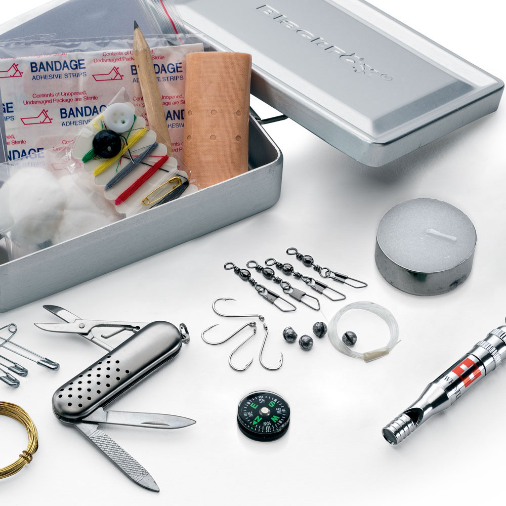 Survival kit contains accessoriess packed in an aluminum box, which can be both part of a larger survival kit as well as an escape backpack prepared in case you need to quickly move away from the place of stay. It should be noted that the set is a loose offer with accessories from various areas in the composition and it can be expanded or some parts replaced as per individual preferences. The Survival kit can therefore be the beginning of our Survival kit. It is worth emphasizing that after any of the components is “exhausted”, in most cases it is relatively easy to replace it based on items that can be found at home, in a nearby store or in a pharmacy.