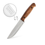 BPS Knives Adventurer Camping Knife with Fire Starter and Sheath for left-handed users is a knife designed especially for camping, mountaineering, bushcraft, and general outdoor activities. The knife features a clip-point blade with a Scandinavian grind. The 1066 carbon steel blade has a satin finish, and the handle is crafted from walnut wood.