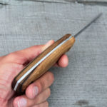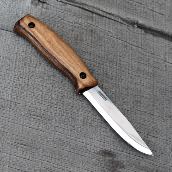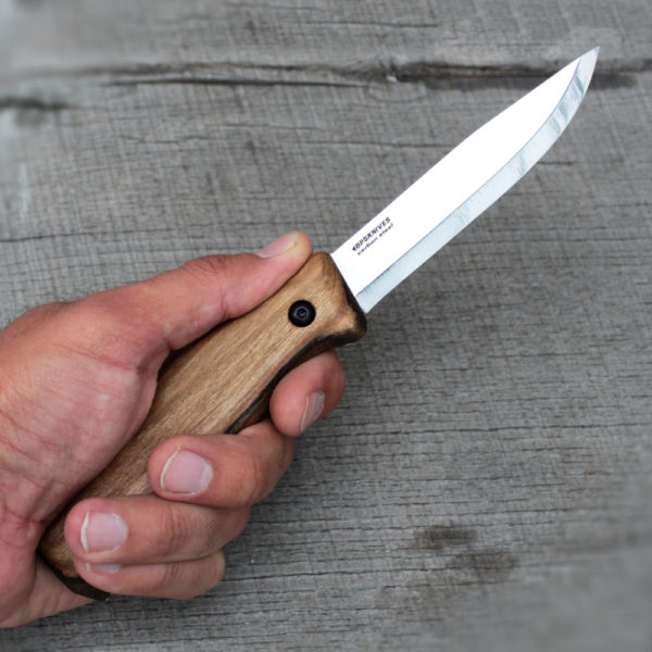 BPS Knives BS3 Camping Knife has a full tang construction, made of one section of steel running through the entire length and width of the handle, to which the scales of walnut wood are attached.