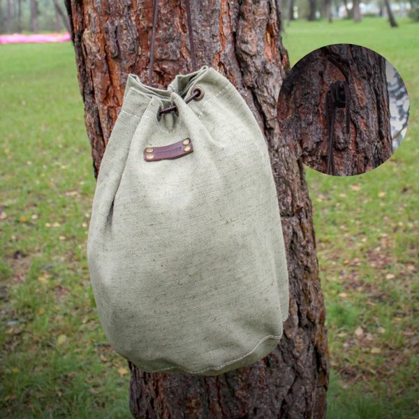 Folded, takes up little space and can be carried in a backpack. However, when there is a need for additional cargo space with easy access, it is an irreplaceable companion of bushcraft-survival trips and mushroom picking. It has a comfortable lacing with a strap and has the form of a cylinder when unfolded. The bag is made of cotton canvas.