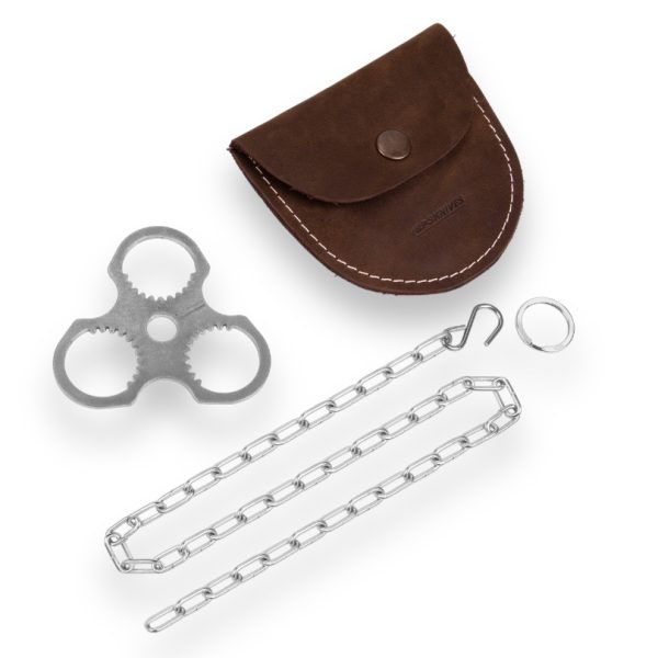 - ADJUSTABLE CHAIN WITH HOOK: Wykonany ze stali nierdzewnej łańcuch o długości 500 mm (19.7″) z regulacyjnym pierścieniem umożliwiającym ustawienie pożądanej wysokości gotowania. Hak na końcu łańcucha pozwala na sprawne powieszenie czajnika lub garnka nad ogniskiem.
