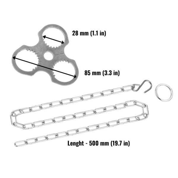 - TRIPOD BOARD: A 500 mm (19.7″) stainless steel chain with an adjustable ring allows you to set the desired cooking height. The hook at the chain’s end makes it easy to hang kettles or pots above the fire.