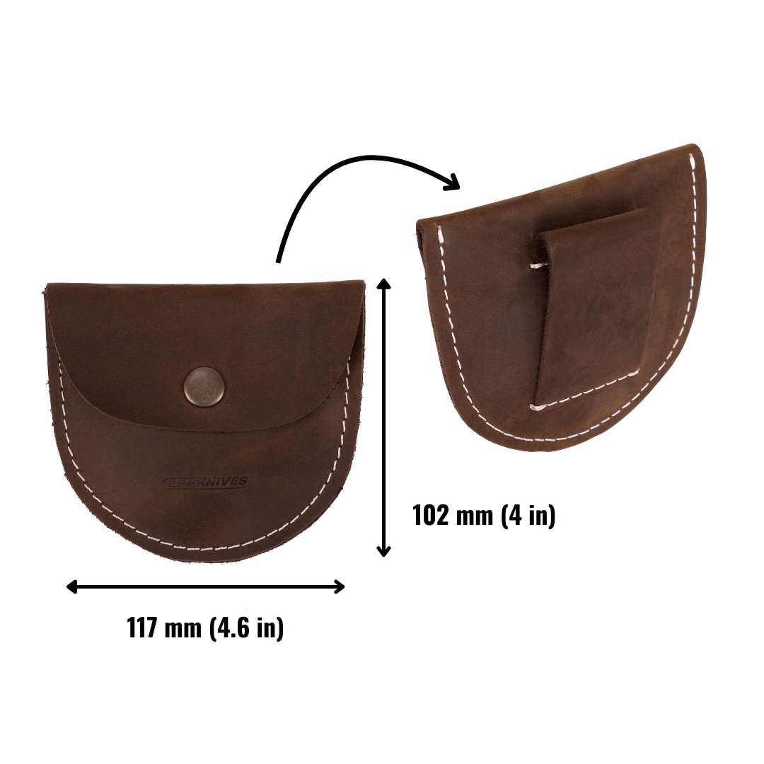 - LEATHER SHEATH: Handcrafted from natural leather, this sheath is designed for storing and transporting the set. It features a snap closure and a loop for attachment to a belt, backpack, or other gear.