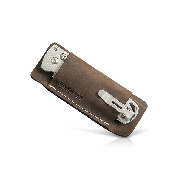 BPS Knives horizontal leather sheath for folding knives 125 x 55 is a convenient and safe form of carrying a folder or multitool. It is mounted to the belt in a horizontal position, made of thick leather with strong stitching to ensure strong and secure holding. The sheath can be mounted to a belt up to 50 mm thick.