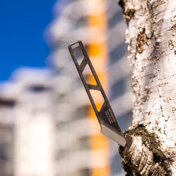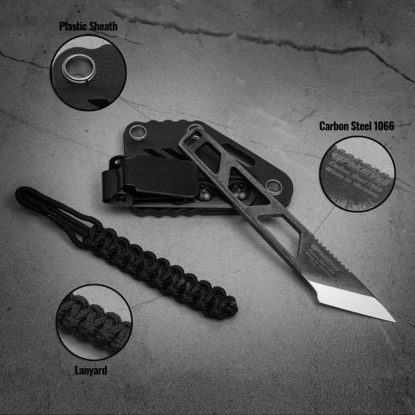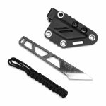 In the set with the knife we get a sheath made of plastic and a lanyard. The knife can be carried around the neck (neck knife). The sheath also has through pins for installation in other places (blet, backpack).