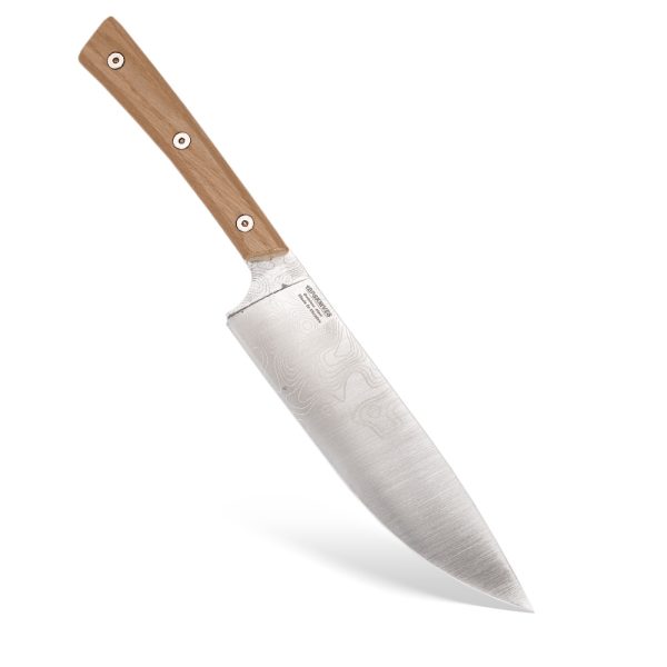 - Blade: Fixed (full tang), chef’s knife with Full Flat Grind, plain edge
