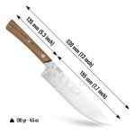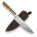**ELEGANT LEATHER SHEATH**: The knife comes with a leather sheath secured with a snap closure. This classic leather sheath complements the knife’s overall aesthetic, with walnut wood and leather forming a timeless combination. Bright stitching adds a unique touch to the sheath. It provides excellent protection for the knife, making it practical for travel and outdoor kitchen use.